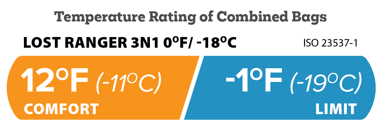 The Lost Ranger 3N1 sleeping bag combines two sleeping bags for three different configurations - providing a sleep solution that's just right at a wide range of temperatures.
