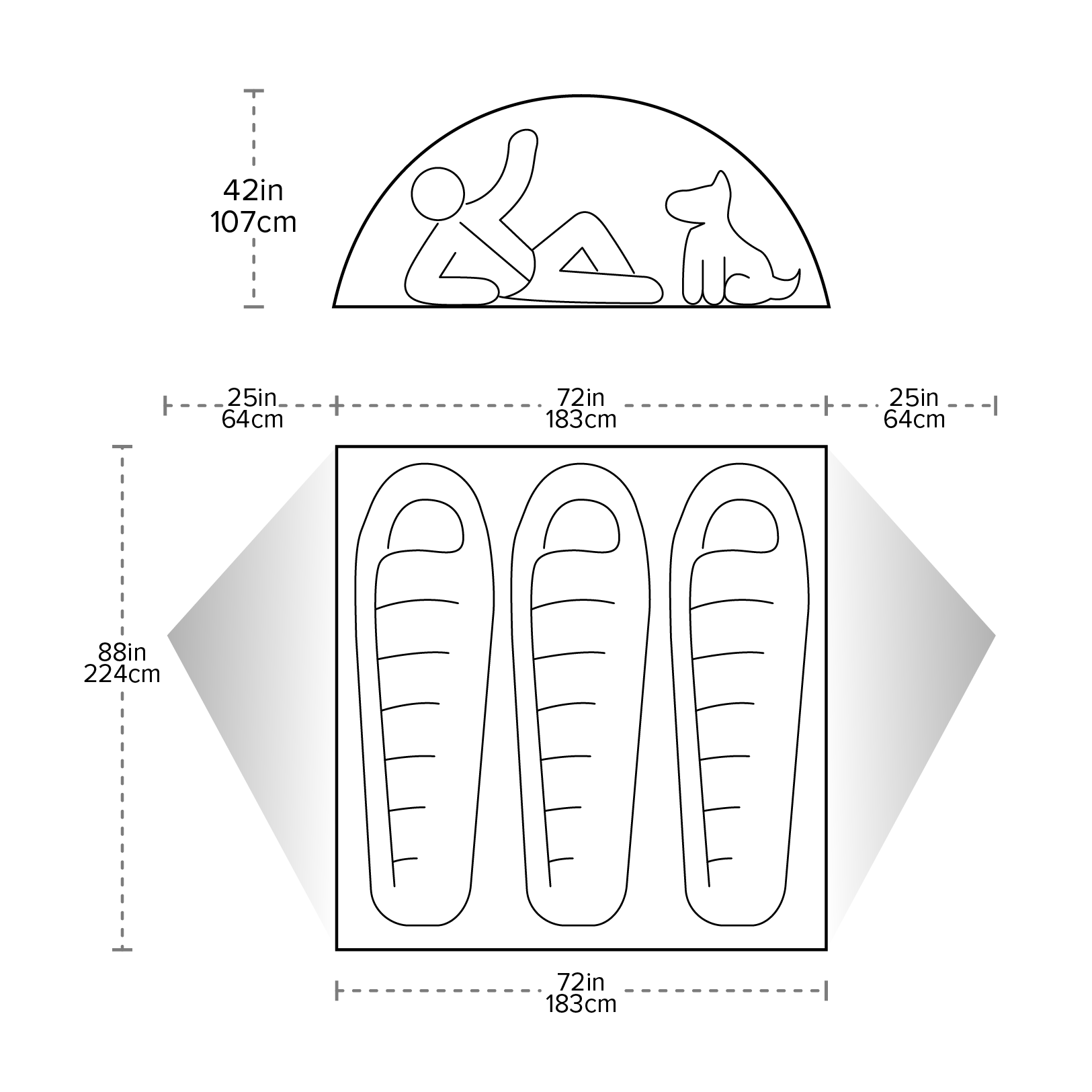 Always make sure your tent is dry and free of debris before storing. Fold and roll your tent a different way each time to avoid permanent creases. Store in a cool, dry place. Never leave your tent in hot temperatures (such as a car trunk or attic space) for long periods of time, as it will damage the material coatings. Storing your tent damp can result in mildew growth, which may cause your tent to smell, leak, or delaminate. Mildew damage is not covered under warranty.